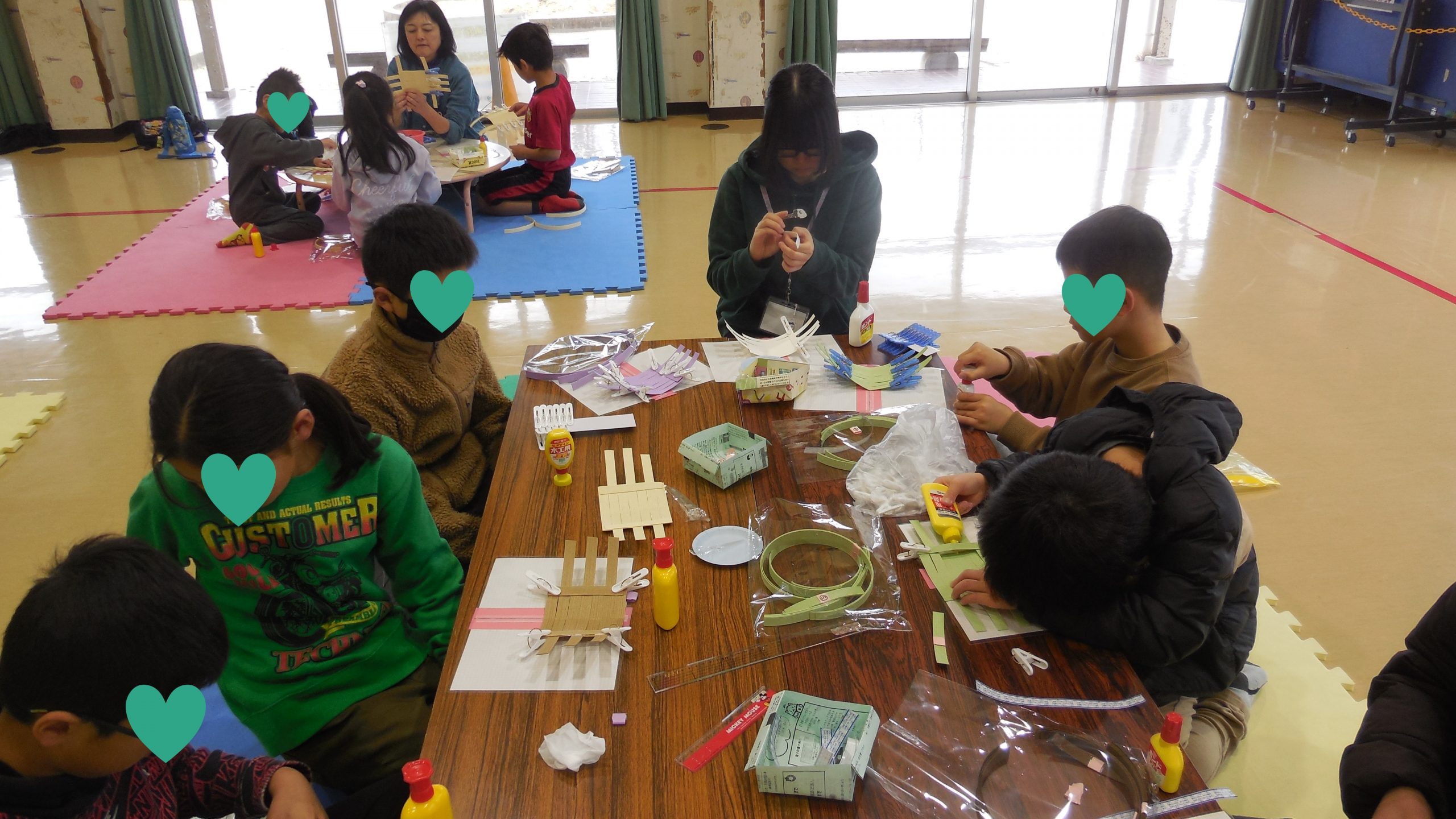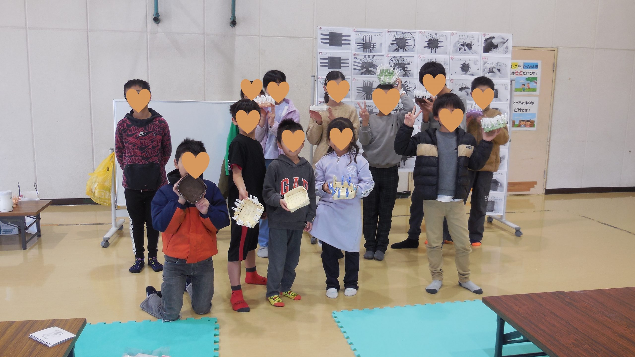 少し難しいところもありましたが、最後までがんばって取り組み、すてきなかごを作ることができました。できあがった瞬間、こどもたちの顔には思わず笑みがこぼれ、達成感があふれていました。